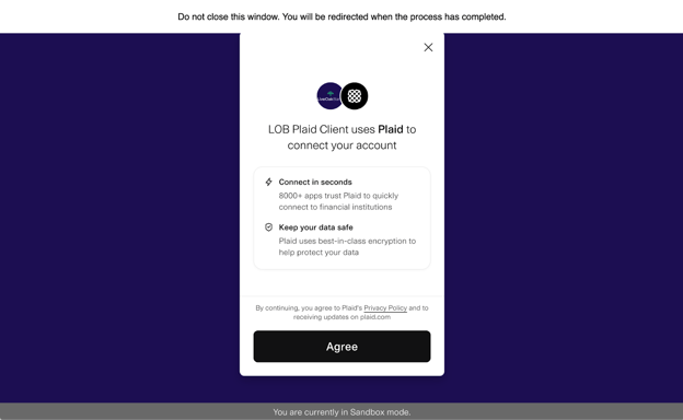3. In the Plaid pop-up window, click Agree.