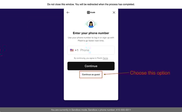 4. When the window asks for your phone number, do not enter your phone number and instead click on Continue as guest.