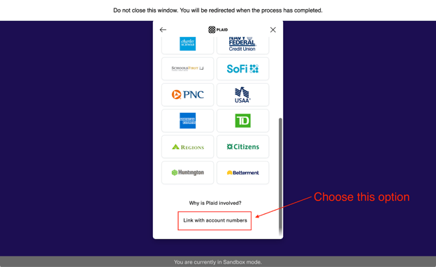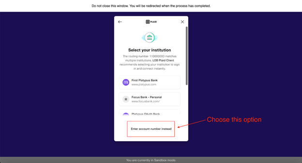 8. When prompted to select your institution, click Enter account number instead.