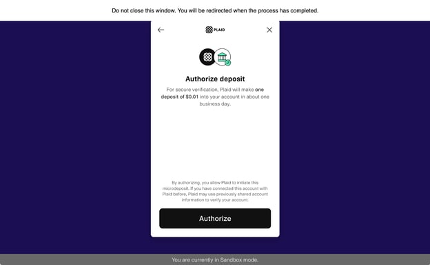 14. You'll be redirected back to Anatomy and a success message will be shown if the microdeposit process has successfully kicked off.