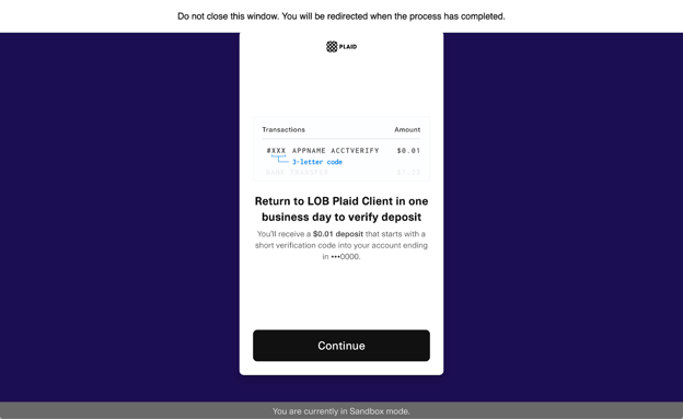 13. Read the microdeposit instructions, then click Continue.